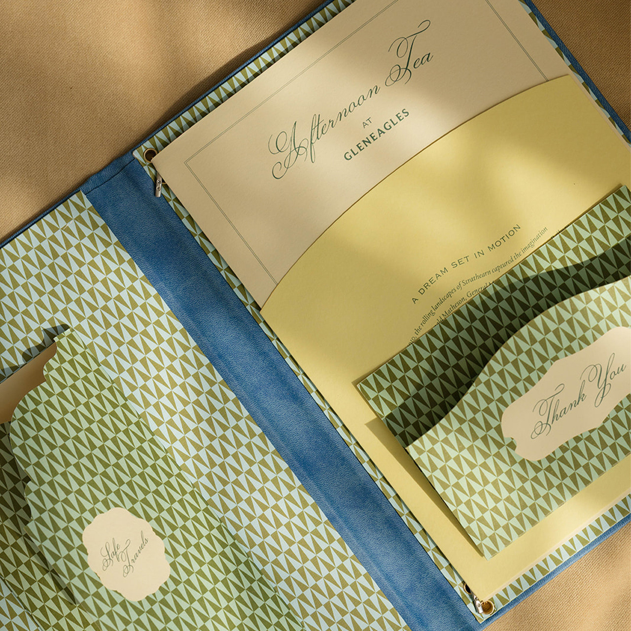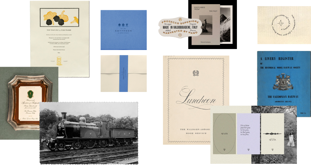 I took inspiration from the Glendevon room where the tea would be served, studying its architecture to uncover visual motifs. Through archival research, I uncovered train liveries and ephemera, providing a treasure trove of aesthetic cues to immerse guests in the world of the glamorous 1920s journey.