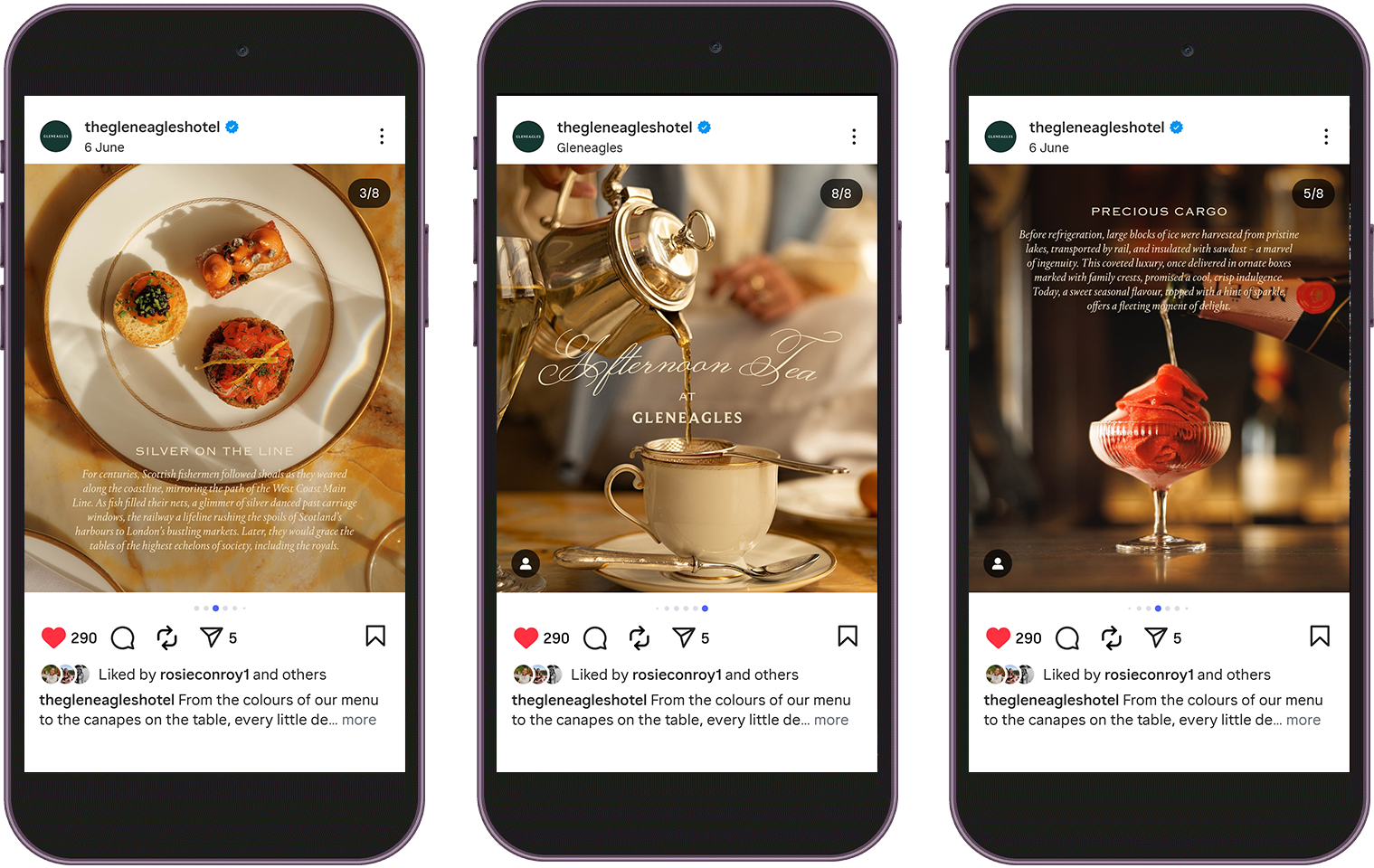 Instagram posts promoting the afternoon tea.