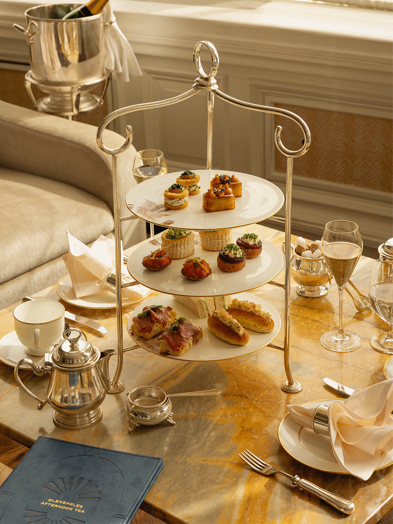 The Gleneagles hotel dates back over 100 years, opening under the ownership of a railway company to encourage visits to rural Scotland. In celebration of this heritage, an afternoon tea menu inspired by a leisurely train journey from London to Perthshire featured courses representing different stops on the line. I created a visual direction and printed collateral imbued with this rich history, then executed digital assets to market this one-of-a-kind experience.
